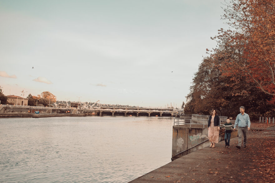 But that’s not all; I also had the privilege of photographing their wedding about a decade ago. So when I had the chance to meet up again, at the very place of their wedding photos at the Ballard Locks during a beautiful fall day, I couldn’t contain my excitement.