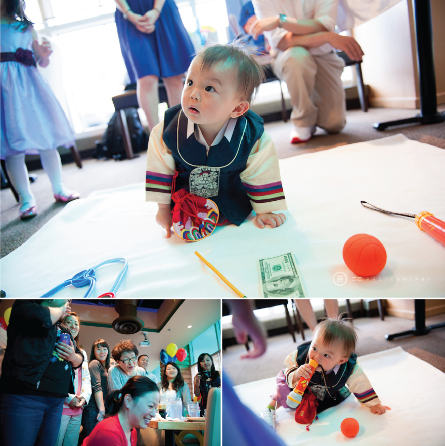 Usually kids get a little bit scared or stressed when so many people are fawning over them. Oliver was Superman, he never cried once! He was super cute and super easy to take photos of, it was almost as if he liked it. For the Doljabi (where items are laid out for him to choose, lawyer, wealth, doctor, athlete, scholar, or long life), Oliver made his way quickly over to the items. At first he picked up a couple of the items but dropped them almost immediately. He then ended up picking up the microphone, which he put in his mouth and would not let go. It’s pretty safe to say that Oliver chose the entertainer.