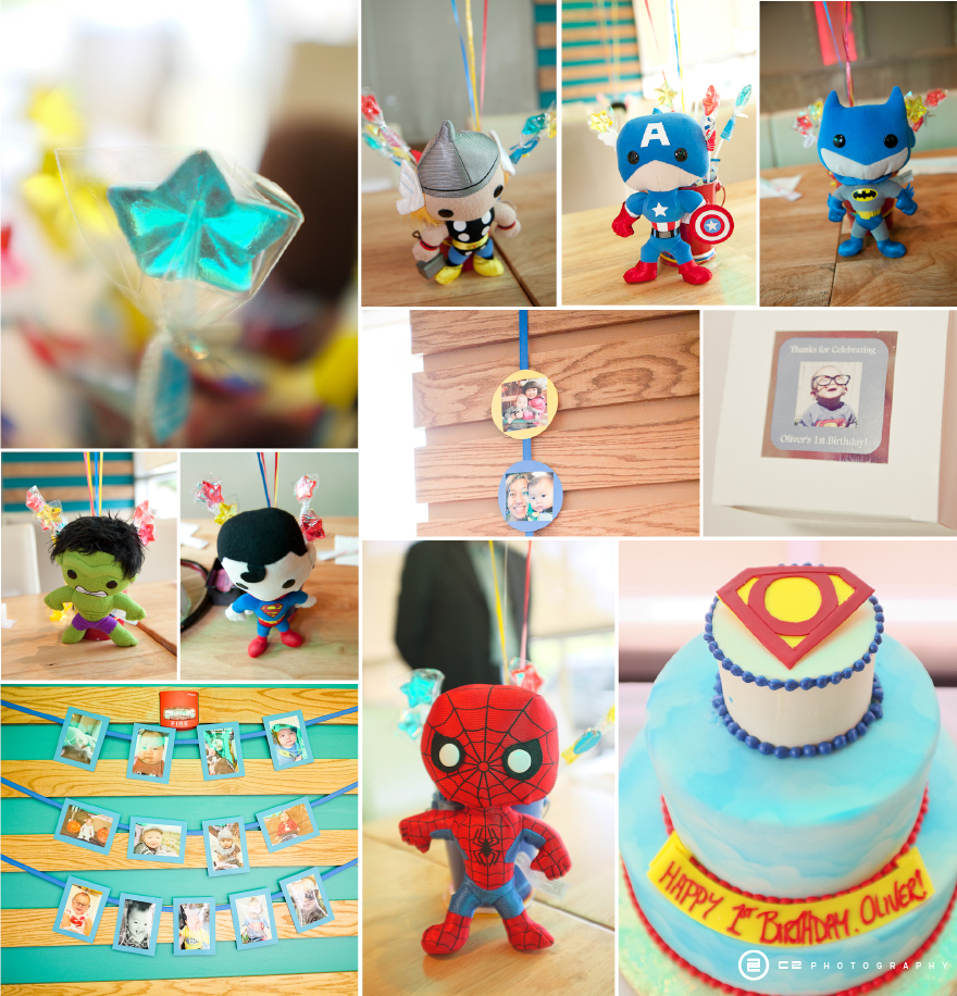 It seems like June has been baby birthday month =). I’ve had more than a couple. I always love photographing children and their families, I just love the creativity I’ve seen lately. Joon and Jimmy (Oliver’s Parents) went with the super hero theme. In the pics you can see little versions of Thor, Spiderman, The Hulk, etc.