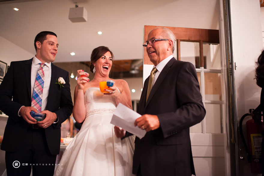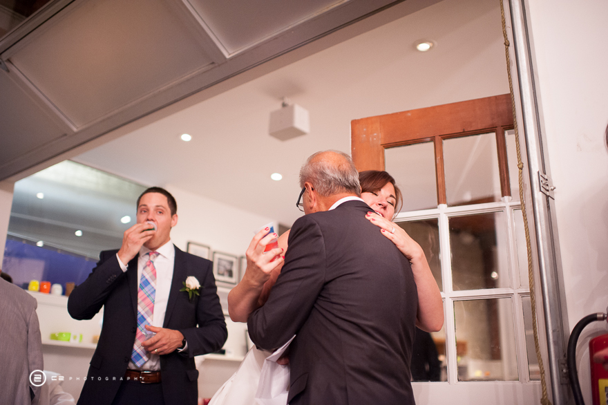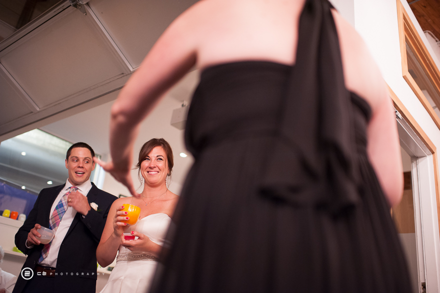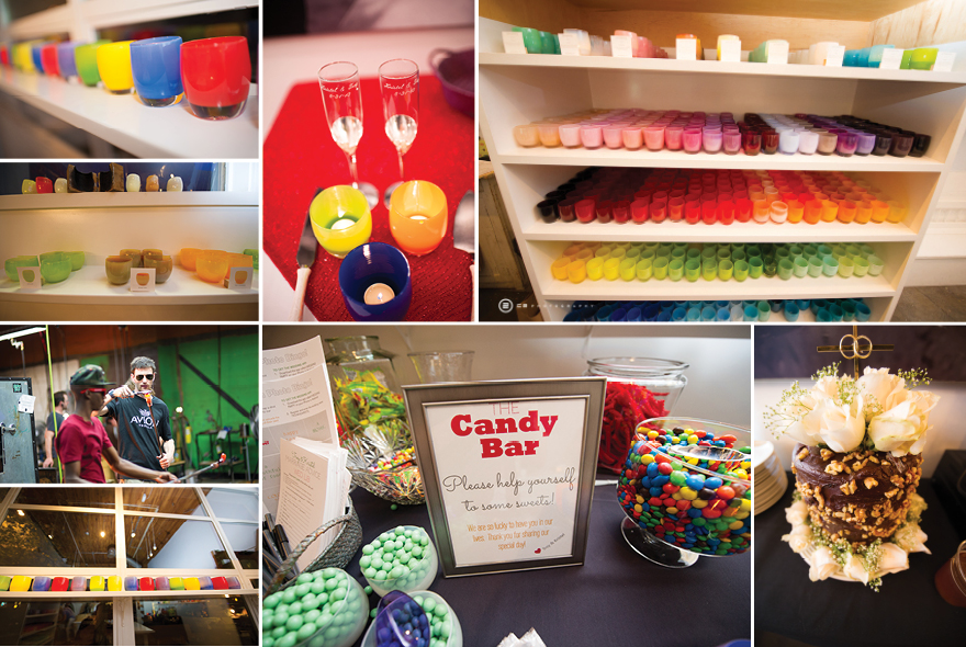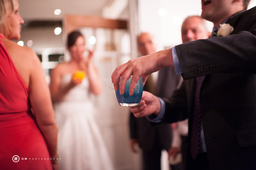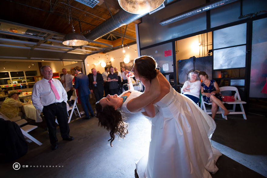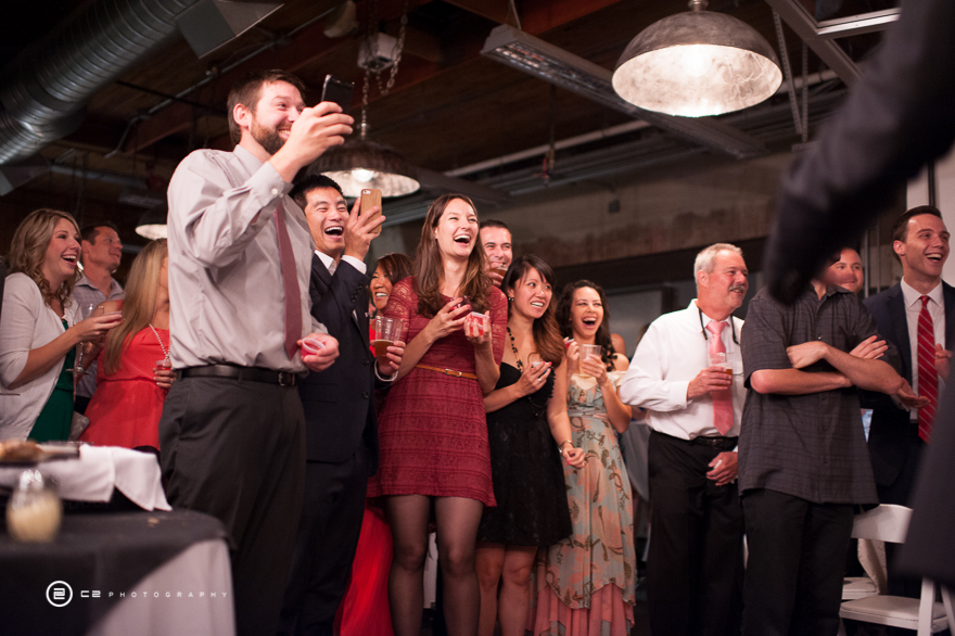 They started their day at the beautiful St. James Cathedral in Seattle. Their reception was then held at the Seattle Glassy Baby. I love the space they chose because it had a lot of industrial and urban elements. In addition to these elements was the nice character the colorful jars brought to the place. Workers were actively making glass art while the reception was going on! Can’t say I’ve seen that before.