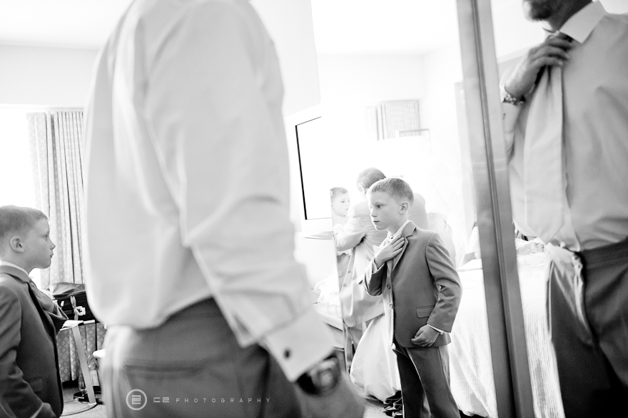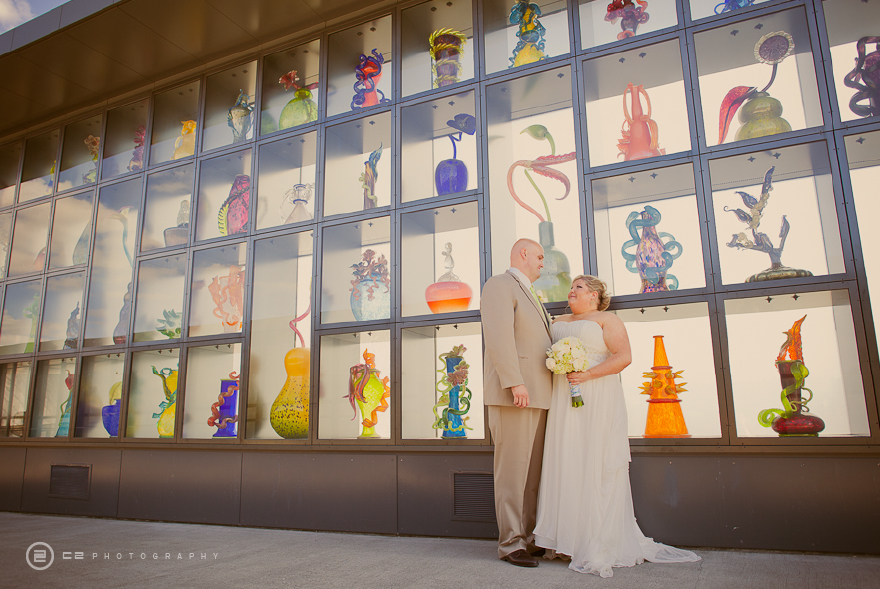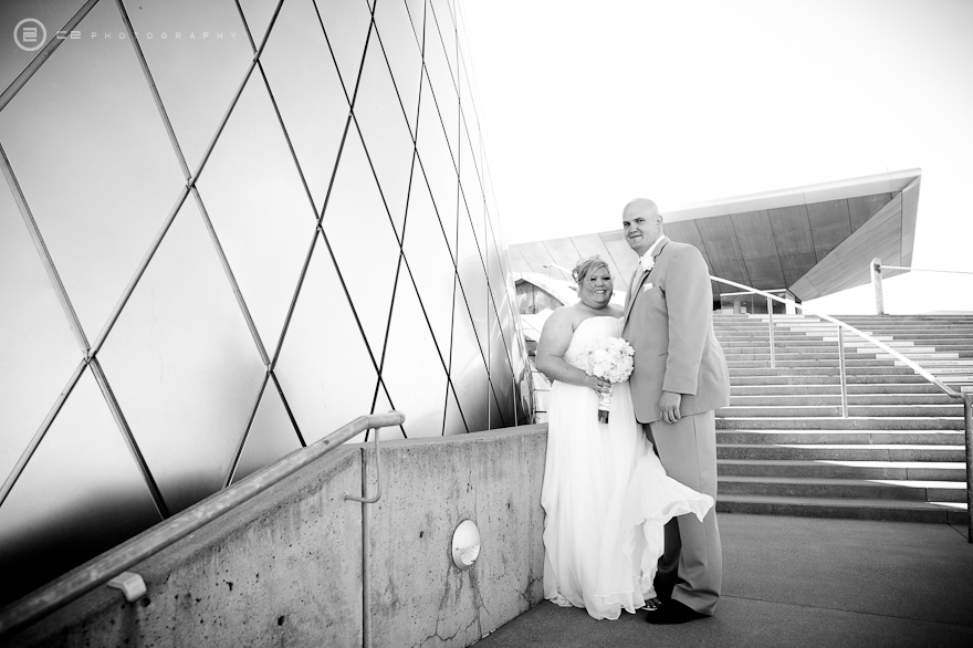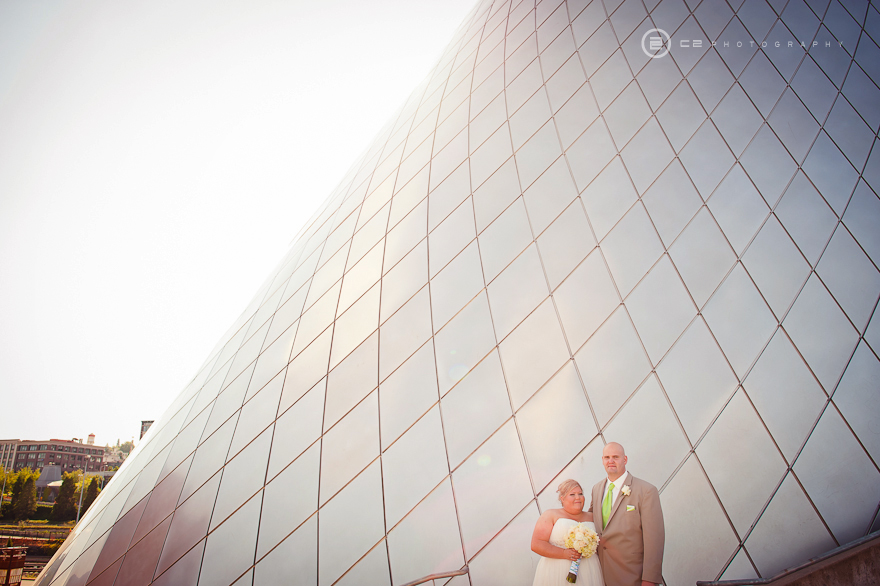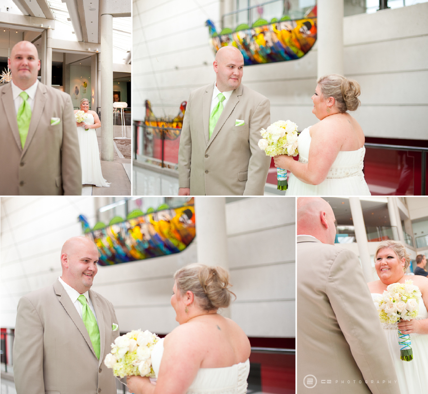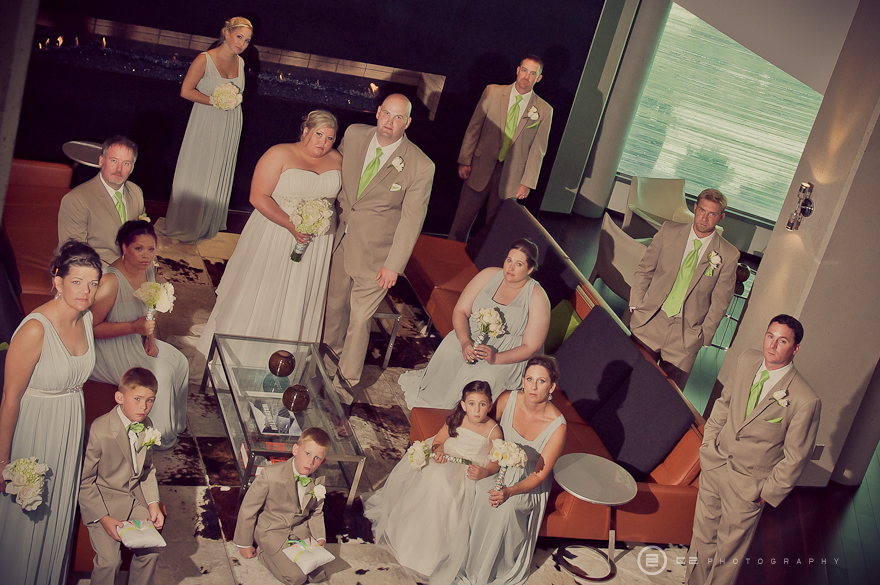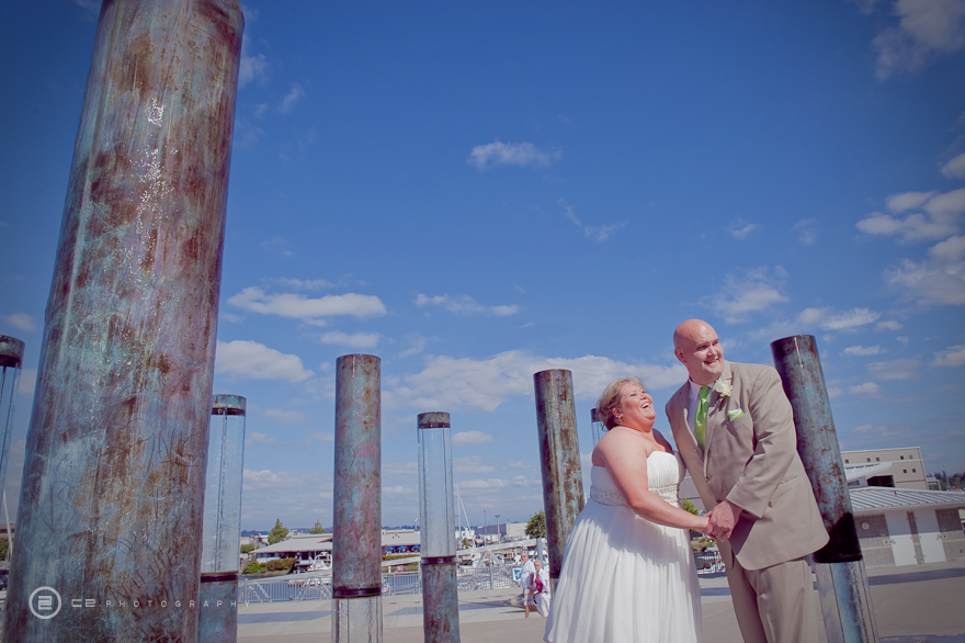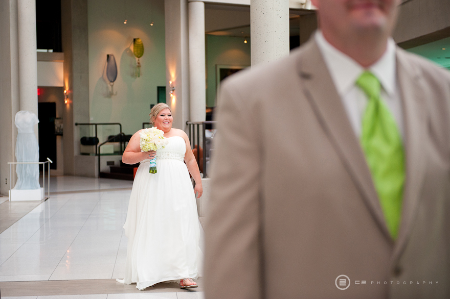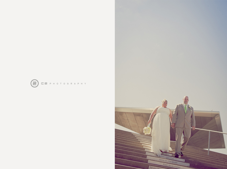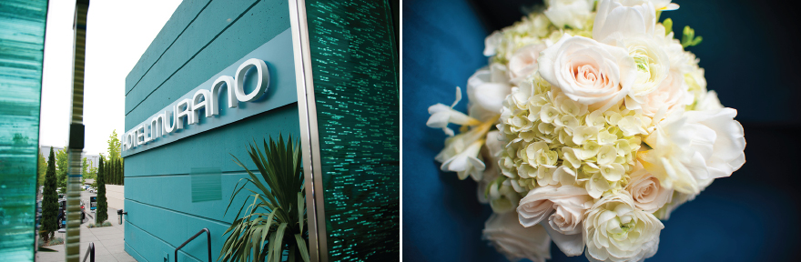 We started the day photographing Amanda and Buddy getting ready at Hotel Murano in Tacoma. When it was time for the reveal we headed down to the lobby. It brought us flashbacks of our own wedding because we were there over two years ago and did the same thing. Now we’re on the opposite end of the camera. We were surprised how busy it was that Saturday as we saw two other wedding parties at the hotel as well. With a little persistence we were able to pull of their reveal =) without Buddy seeing Amanda and without a ton of other people in the shot.