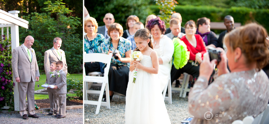 Their ceremony was held at a nice intimate outdoor setting at Priest Point Park Gardens in Olympia. The weather cooperated and it was actually sunny and warm! We always love when it works out for our clients.