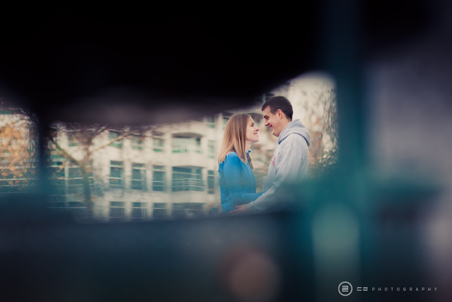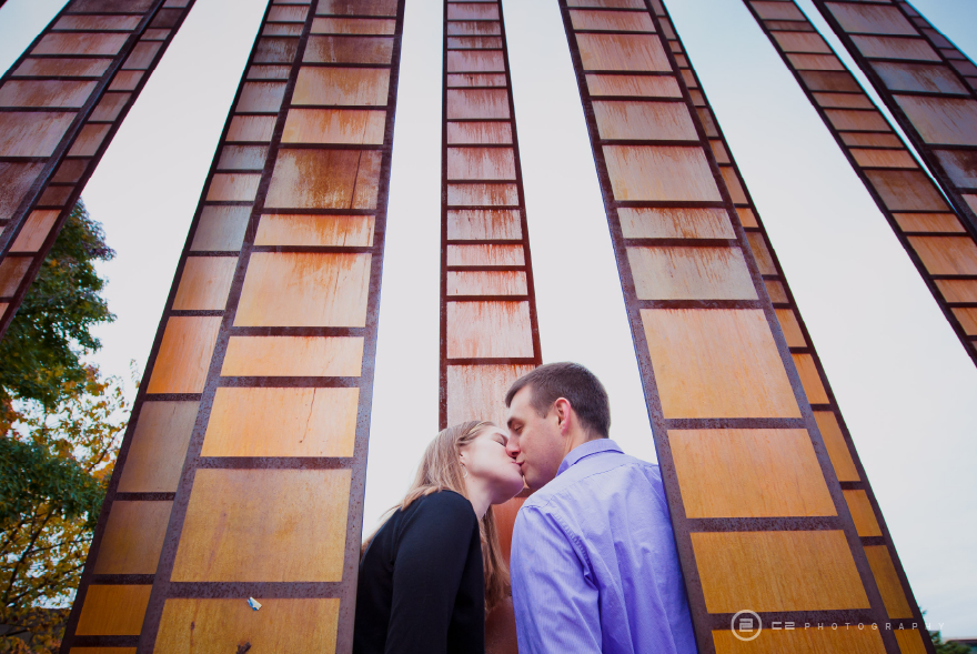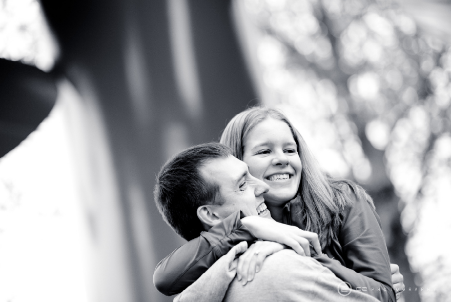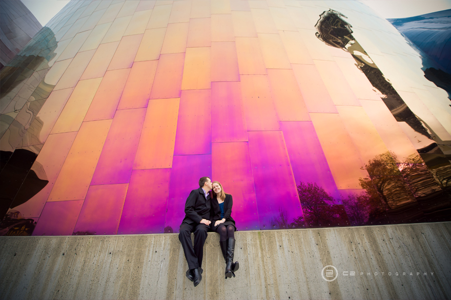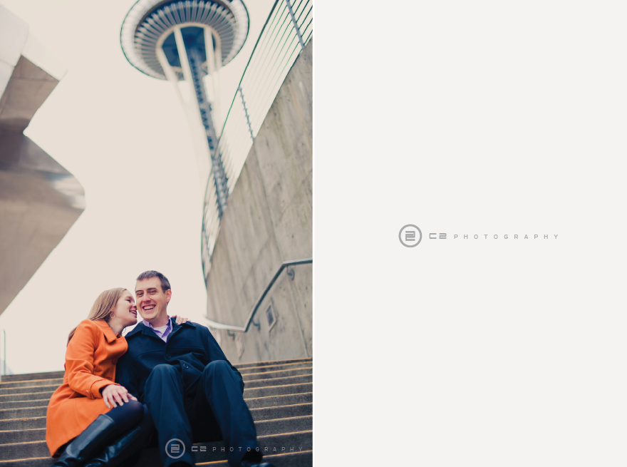 These two made our jobs pretty easy as they were very easy going and let us do anything we wanted =D, despite the cold weather, and wet leaves! As we strolled around looking for spots at Seattle Center they told us how they met. These two met because of Patrick’s broken leg. Not exactly but, thats how it all started =). Patrick went online a lot more since he couldn’t really get around. They then met each other online, dated, and Kirsten was there to help Patrick recover. We have a soft spot for couples who meet online, because Cindy and I met online before we ever met in person. Thats the first time I’ve heard that a broken leg could be a good thing! Maybe thats where they got the term, “go break a leg!”