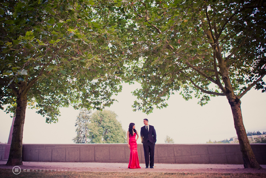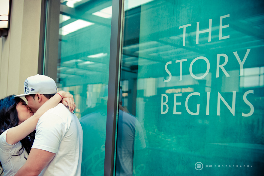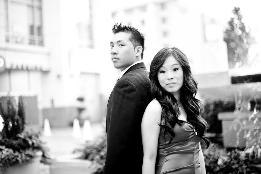 Pallas and Mike flew all the way from North Carolina to do their engagement shoot here but almost to get the session ruined by uptight security guards at the Bravern. We thought the Bravern at Bellevue had a lot of spots we can use to create some nice urban and elegant shots. We were there a year ago doing a practice shoot with our friends and we didn’t have any problems the first time we were there, this time was a different story… We kept getting followed and stared at by the security guards. Then they tired to kick us out, but a nice security allowed us to stay for a little while (with a little convincing from Charles)…thank you nice security guard!
