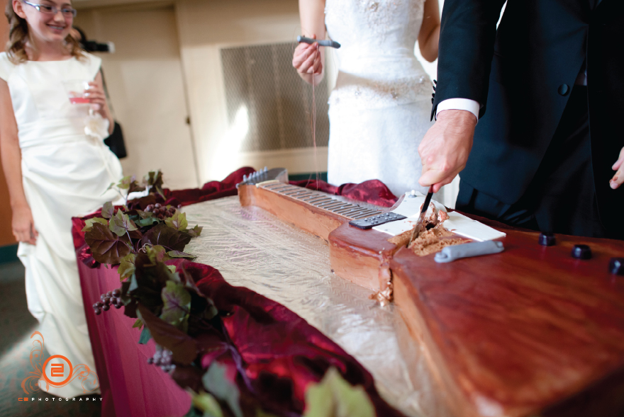 Whitney and Steven both live in San Diego but they both flew up to Seattle to hold their wedding because most of their family are from here. They had an Italian theme wedding with a touch of Rock! Steven played his guitar while Whitney came down the aisle and they had a pretty cool looking guitar cake. It was a pretty big wedding with lots of party animals that danced until the party ended.